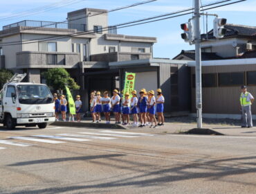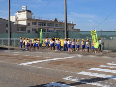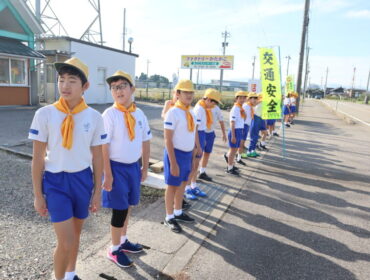 2025.9.26 学校 4年生 5年生 6年生 秋の交通安全運動「人波作戦」 交通少年団4~6年生が、春に続き、秋の交通安全運動「人波作戦」を行いました。 各学年ごとに、通行する車の運転手に向かって、交通安全や事故防止を呼びかけました。