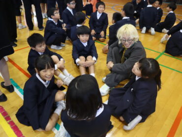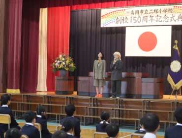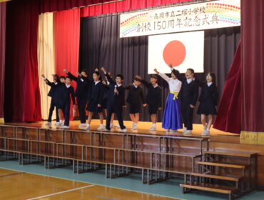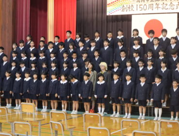 創校150周年記念ソング「ぼくらの学校(ばしょ)」を作詞作曲してくださったMisiiNさんの講演の後、MisiiNさんといっしょに歌を披露しました。