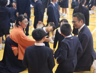 また、クイズに関連させて、二塚に伝わる舞踊を6年生女子が披露しました。