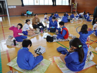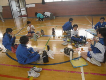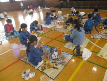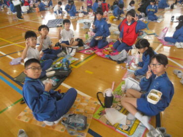 オリエンテーリングで体を動かした後は、みんなでおいしくお弁当を食べました。