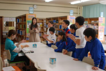 今日はあいにくの雨でした。おとぎの森集会を校内で開催しました。