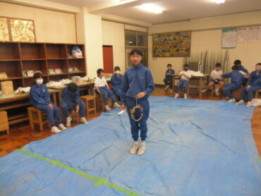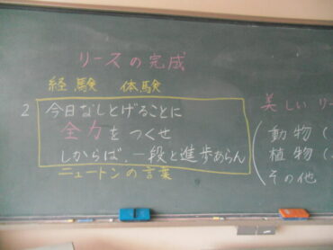 150周年の記念の年に作った「わら細工」をずっと大切にしてほしい、体で覚えた「体験」は、一生体が覚えているとお話してくださり、「今日なしとげることに 全力をつくせ しからば、一段と進歩あらん」というニュートンの言葉も教えて頂きました。