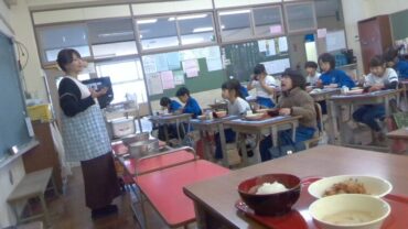 2025.11.21 学校 4年生 4年生 食育丼ランチ 毎月19日は「食育(食19)の日」です。 今月は「国吉きのこのチキン南蛮丼」でした。 そして今回は、4年生が高岡漆器のお盆とどんぶり茶碗で給食をいただきました。 栄養教諭の先生から、食育の日の由来や、地産地消の話を聞きながら、いつもより贅沢な気持ちで、美味しく食べることができました。