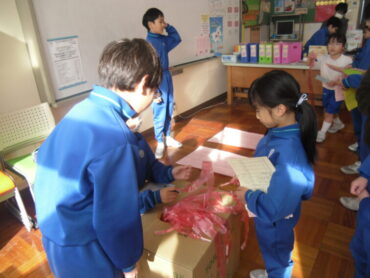 休み時間には、図書委員特製の「わくわくどきどき あみだくじ・ひもくじ」を行います。