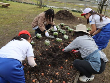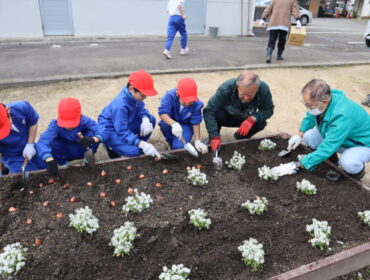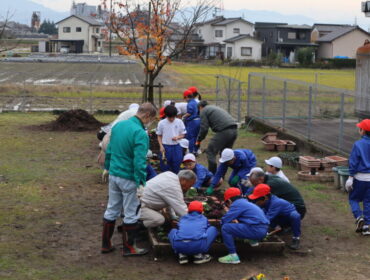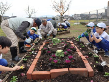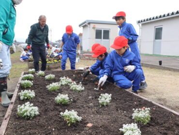 2025.11.28 学校 3年生 3年総合 花の苗植え 3年生は、総合的な学習の時間に、虹色ガーデンに春に咲く花の苗と球根を植えました。 花と緑の銀行や地域のグリーンキーパーの方々が協力してくださいました。 今回は、翼・入学・立山連峰をイメージしました。 どのような花壇になるのでしょうか。春が楽しみです。