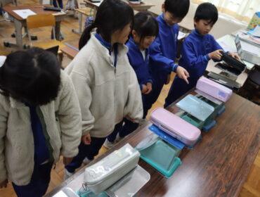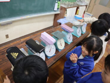 2025.12.8 学校 3年生 3年 算数 筆箱をはかろう 3年生は、算数の時間に、はかりを使って、筆箱の重さを調べました。 はかりによって、目盛りが異なることや使用範囲があることを発見していました。 デジタル機器を用いてはかりの使い方を学習している子もいました。 日常生活にも生かしていきたいですね。