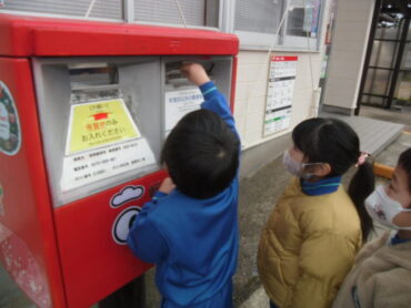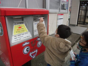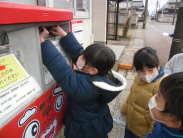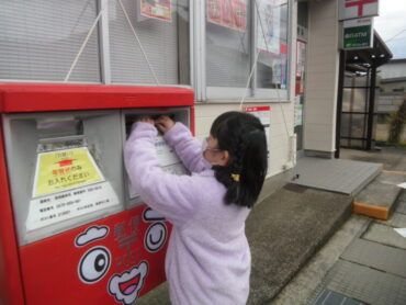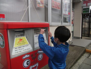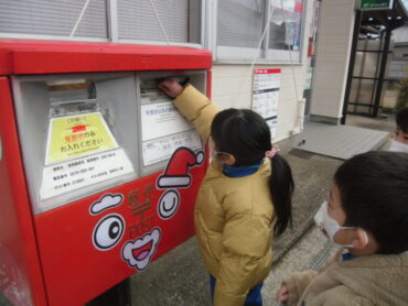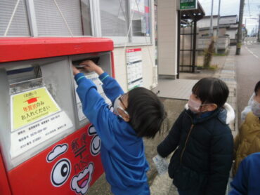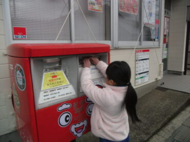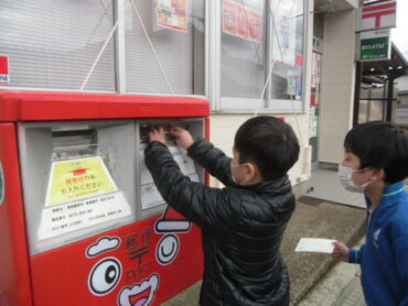 2025.12.16 NEW 学校 1年生 1年生 てがみで しらせよう 1年生は、国語の時間に「てがみで しらせよう」という学習を行いました。 2学期の学校生活で頑張ったことや心に残ったことをはがきに書いて、自分の送りたい相手に送ることにしました。 今日は、完成したはがきを持って、二塚郵便局に行き、ポストに投函してきました。 子供たちからは、「ちゃんと届いてほしいな。」、「早く届いてほしいな。」という声が聞かれました。 丁寧に書いたはがきが無事に届いてほしいです。届きましたら、ぜひ、子供たちに伝えてあげてくださいね!