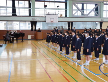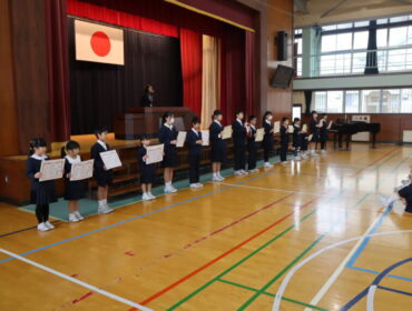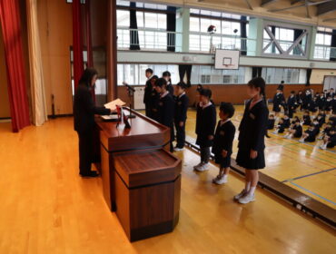 2025.12.24 学校 全校生 2学期終業式 終業式に先立ち、授賞と、代表児童による2学期にがんばったことの発表がありました。 2学期にがんばった成果がたくさんありましたね。 代表にならなかった人たちも、2学期のがんばりがたくさんあったことと思います。ぜひ、おうちの人と2学期のことをふり返って話をしてほしいと思います。 そして、いよいよ終業式。 長い2学期を締めくくり、冬休みになります。家族と過ごす時間を大切に、3学期への鋭気を養ってほしいと思います。