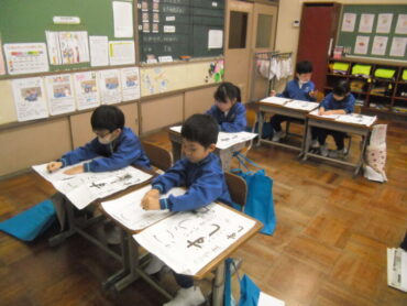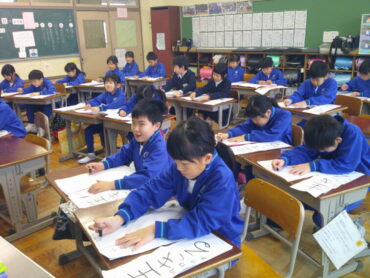 始業式に引き続き、各学年で書初大会が行われました。