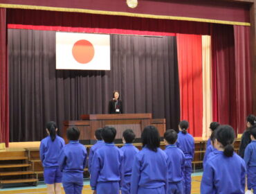 3学期始業式が行われ、校長先生から2つのお話をしていただきました。