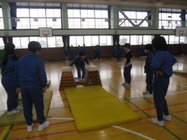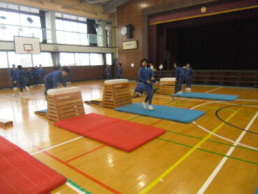 2026.1.20 NEW 学校 5年生 6年生 5・6年体育(跳び箱運動) 5・6年生は、体育の学習で跳び箱運動に取り組んでいます。 中学年で取り組んだ台上前転から、膝伸ばし台上前転や頭はね跳び等の発展技に挑戦しています。 大技を披露して、みんなから賞賛の嵐を受けた児童も! また、かかえこみ跳びにも挑戦しています。 自分の課題に合わせて、練習方法を決めています。 どんどん段数や跳ぶ距離が伸びて、意欲が高まっています。