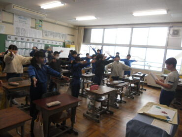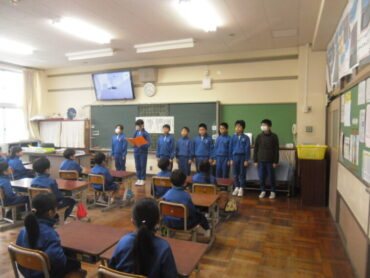 2026.1.29 学校 5年生 卒業を祝う会に向けての歌練習(在校生) 今日は、5年生が中心となり、卒業を祝う会で歌う「ありがとう6年生」の練習を各教室で行いました。 5年生の音楽部が考えた振り付けを伝え、細かく区切って練習しました。 在校生の心と歌声が一つになるように、元気よく歌って踊って練習していきましょう!