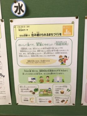 2026.1.29 学校 全校生 給食週間3日目 給食週間3日目のテーマは、「住み続けられるまちづくりを」でした。 高岡産の野菜や味噌を使うなど、地産地消にちなんだ献立をいただきました。 地元食材を積極的に食べて、地域を応援しましょう。 感謝の手紙は、1年生と2年生が担当しました。 学童前の掲示板には、SDGsについてのポスターや、5日分の献立について詳しい資料が掲示してあります。また読んでみてくださいね!