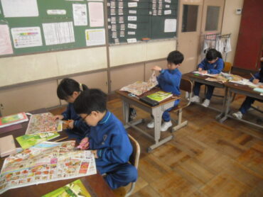 2026.2.3 NEW 学校 1年生 1年生 かたかな 1年生は、国語の時間にかたかなのかたちの学習をしました。 ひらがなと似ているかたかな、かたかなの中でも似ている字を見つけました。 今日は、チラシの中からかたかなを探して、そのかたかなを使って文を作ってみました。 いろいろなところにかたかなが隠れていてました。楽しみながらいくつも探し出しました。