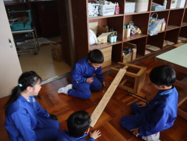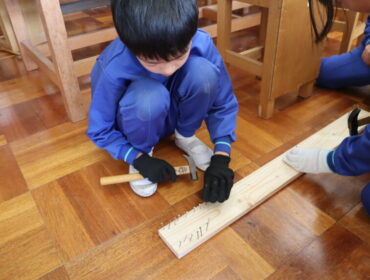 2026.3.13 学校 3年生 3年 図工 「トントン、釘打ち」 3年生は、図工の時間に、金槌を使って釘打ちをしました。 今回は、長い板に釘を打ち付けビー玉が転がるコースを作りました。 実際に、転がしてみながら、試行錯誤してコースを作っていました。 中には、ミリ単位で釘の位置を動かしていました。 思い通りのコースは作れたかな。