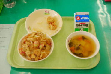 2026.3.20 NEW 学校 全校生 今年度最後の食育丼 今日は、「春待ちきつね丼」でした。 かわいい色の「手まりふ」が入った、春をイメージした丼です。 「きつね」は「油あげ」のこと。 きつねは、お米の神様である「お稲荷様」のおつかいをする動物だという言い伝えがあり そのきつねの大好物が「油あげ」だったそうです。 とってもおいしくいただきました。